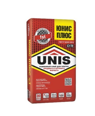 Используется для укладки всех видов керамической плитки, клинкерной плитки, плит из природного камня и керамогранита размером не более 60х60 см на полы и стены в любых помещениях: влажных, сухих, промерзающих и отапливаемых. Для наружных работ, облицовки фасадов зданий. «ЮНИС ПЛЮС» рекомендуется для сложных задач: для системы «Тёплый пол», керамогранита на фасад, укладки поверх старой плитки («плитка на плитку»). Приклеивание керамогранита 60х60 см на фасад возможно при вспомогательном механическом креплении плит.