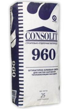CONSOLIT 960 применяется в системах наружной теплоизоляции на фасадах всех типов зданий. Используется для приклеивания всех типов теплоизоляционных панелей (вспененные/экструдированные пенополистирольные и минераловатные плиты, пробковые покрытия) на все виды ограждающих конструкций. Применяется для устройства базового армирующего слоя по утеплителю с использованием щелочестойкой стеклосетки. Может использоваться при выполнении наружных и внутренних работ при внутренней изоляции мансардных кровель, внутренняя изоляция стен, внешняя изоляция вентилируемых фасадов Основанием для приклеивания и выравнивания теплоизоляционных плит могут служить: монолитный и сборный железобетон, цементно-песчаная штукатурка, кладка из пенобетонных и гипсовых блоков.