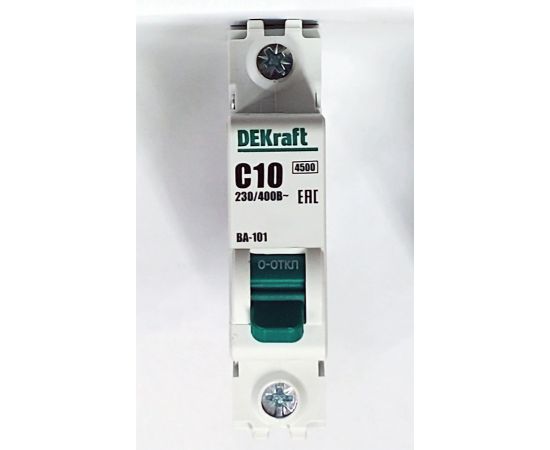 Автоматический выключатель серии ВА-101 DEKraft, 1P, номинальный ток 10 А, характеристика С, отключающая способность 4,5 кА. Новый механизм расцепления мгновенно разрывает цепь при возникновении аварии. 5 монолитных заклепок повышают прочность корпуса аппарата. Сплошная лицевая панель обеспечивает безопасность эксплуатации аппарата. Боковые каналы охлаждения повышают стабильность работы при высоких температурах окружающей среды. Полностью автоматизированный контроль качества производства.