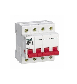 Выключатель-разъединитель серии ВН-102 DEKraft, 4P, номинальный ток 32 А, установка - на DIN-рейку, установочное положение - любое. Выключатели-разъединители применяются для ручного включения/отключения сетей напряжением до 400 В. Специальные мостиковые контакты обеспечивают надежный разрыв цепи, они полностью исключают возможность перекрытия дугой по изоляции. Усиленная рукоятка управления обеспечивает большое количество включений/отключений.