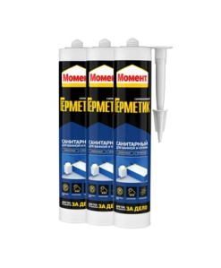 Герметик силиконовый санитарный «Момент Гермент» - универсальный однокомпонентный герметик на основе силиконового полимера (ацетокси) для герметизации и заполнения швов и стыков. Предназначен для использования в помещениях с повышенной влажностью: ванных комнатах, душевых кабинах, туалетных комнатах, кухнях, при остеклении и т.д. Применим при общих строительных и ремонтных работах как внутри, так и снаружи помещения. Содержит антисептическое средство, препятствующее образованию плесени.
