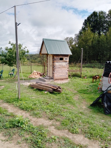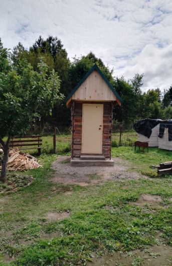 Теплый туалет на частной территории. внутренние размеры здания 1,5 на 1,8 метра. Сруб из бруса 100 на 100. Дверь щитовая. Доска 40 на 40. Сборка в клин. Под туалетом три кольца. Глубина выгребной ямы 3 метра. Земляные работы с установкой колец за счет заказчика. Активная вентиляция. Отличная отделка помещения (обшивка стен гипсокартоном, поклейка обоев, плинтус потолочный и напольный). Установлена раковина с умывальником. Нет запаха абсолютно. Все удобства для тех, кто проживает в своем доме круглый год. Возможна установка электрического обогревателя малой мощности. Отделка фасада в цену не входит. Срок выполнения работ 3-4 недели. Цена указана с учетом цены за брус. Проведение работ возможно на территории Калужской области.